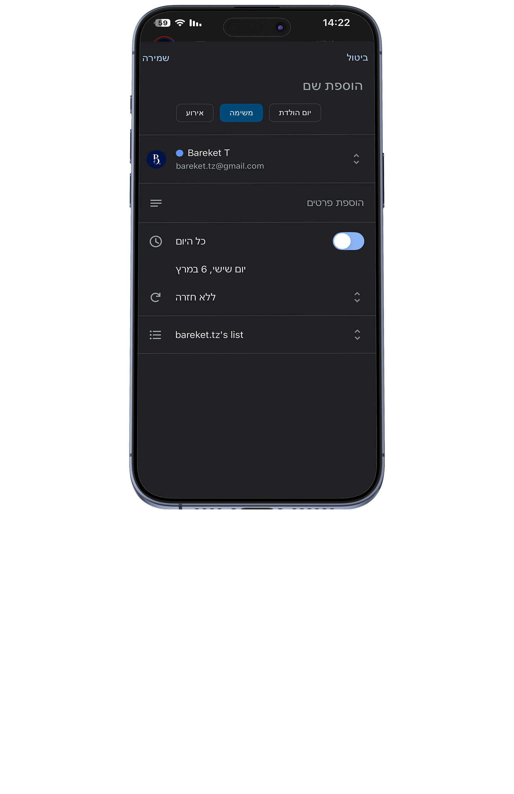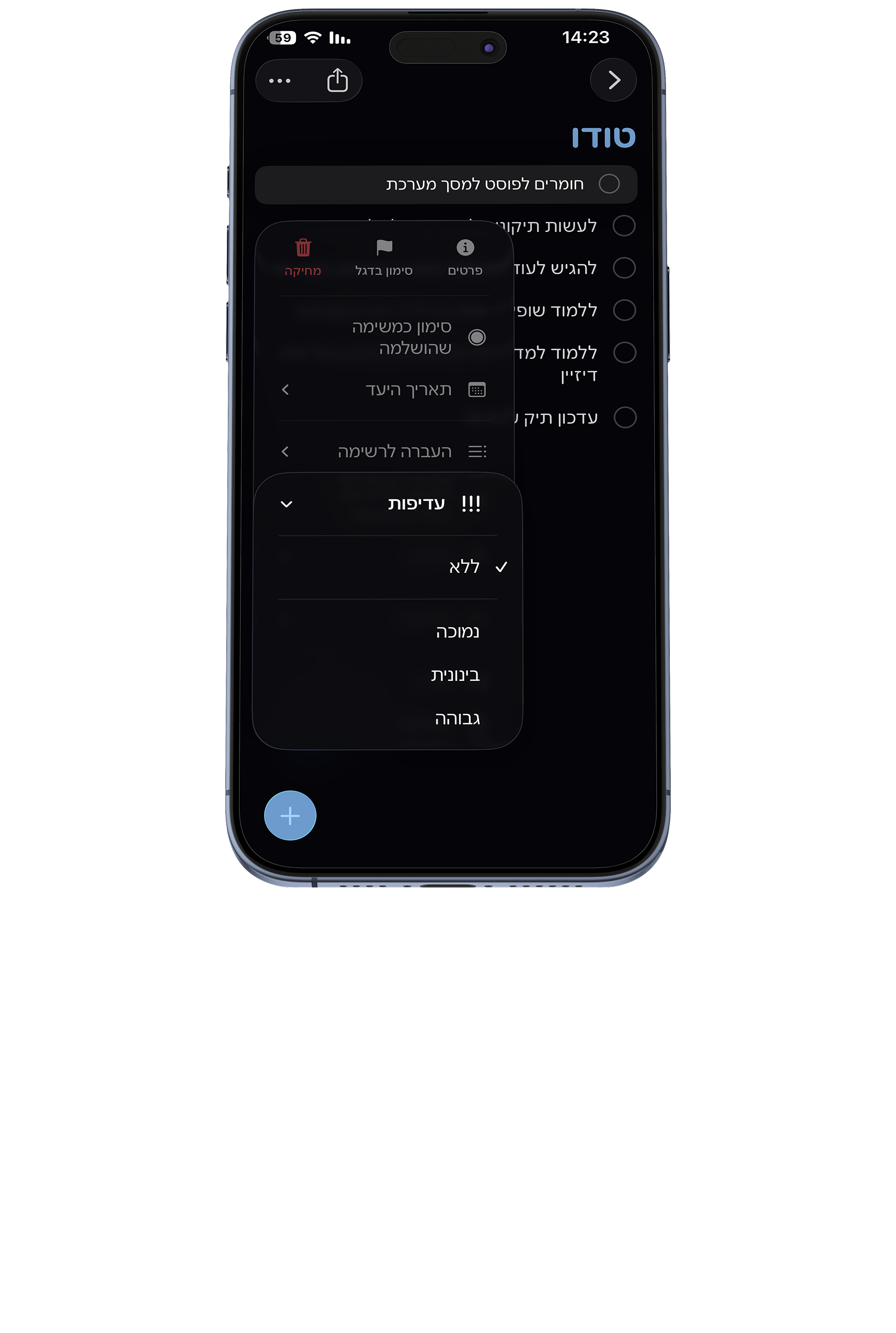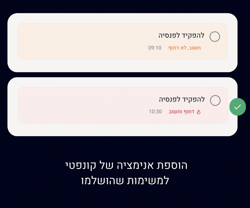 סימון ביצוע: אפשרות לסמן משימה כהושלמה, ואנימציית קונפטי לחיזוק חיובי