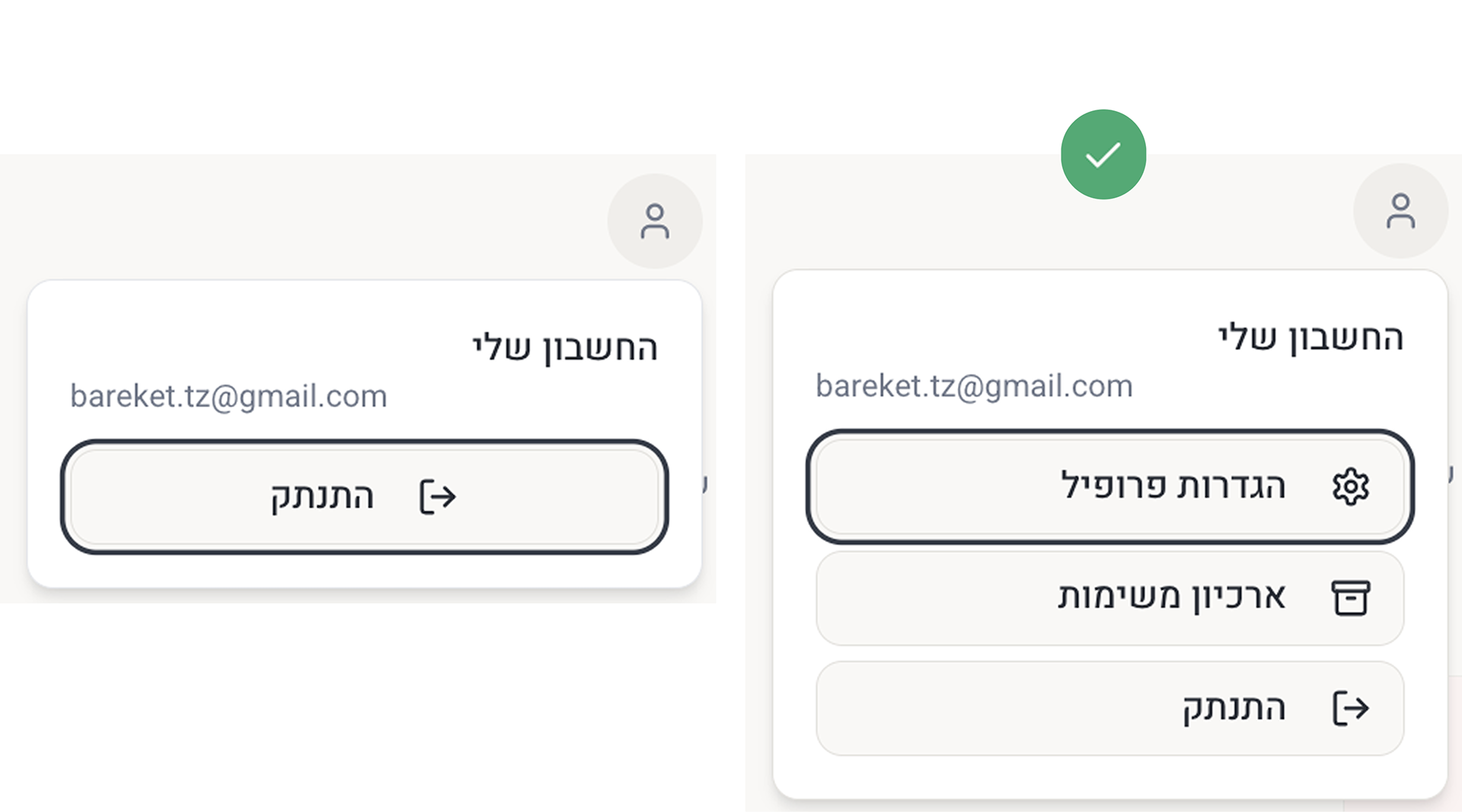 ניהול פרופיל: הוספת אזור אישי המאפשר התנתקות וצפייה בפרטי החשבון המאובטחים