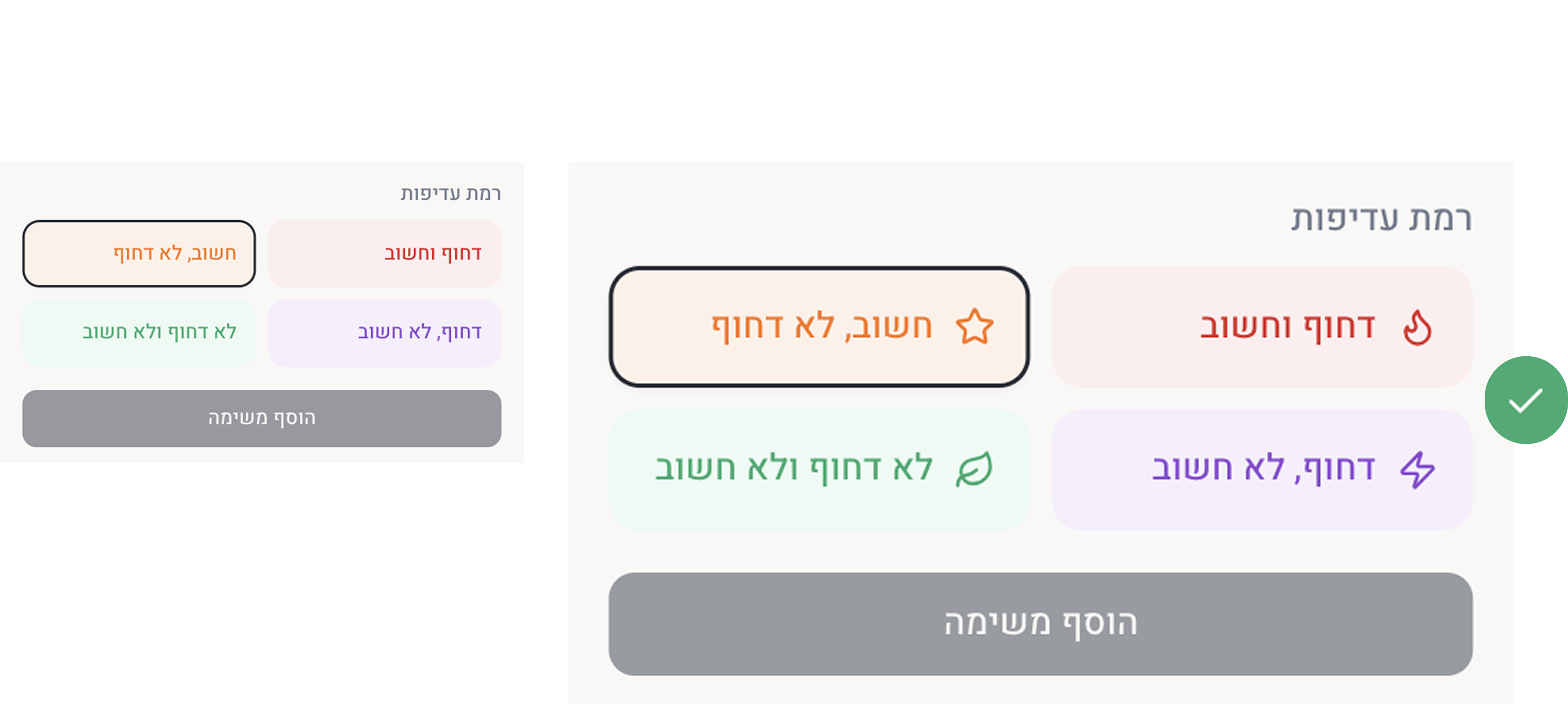 מערכת התיעדוף: חלוקה לארבע קטגוריות עם היררכיית צבעים ברורה להפחתת עייפות החלטה