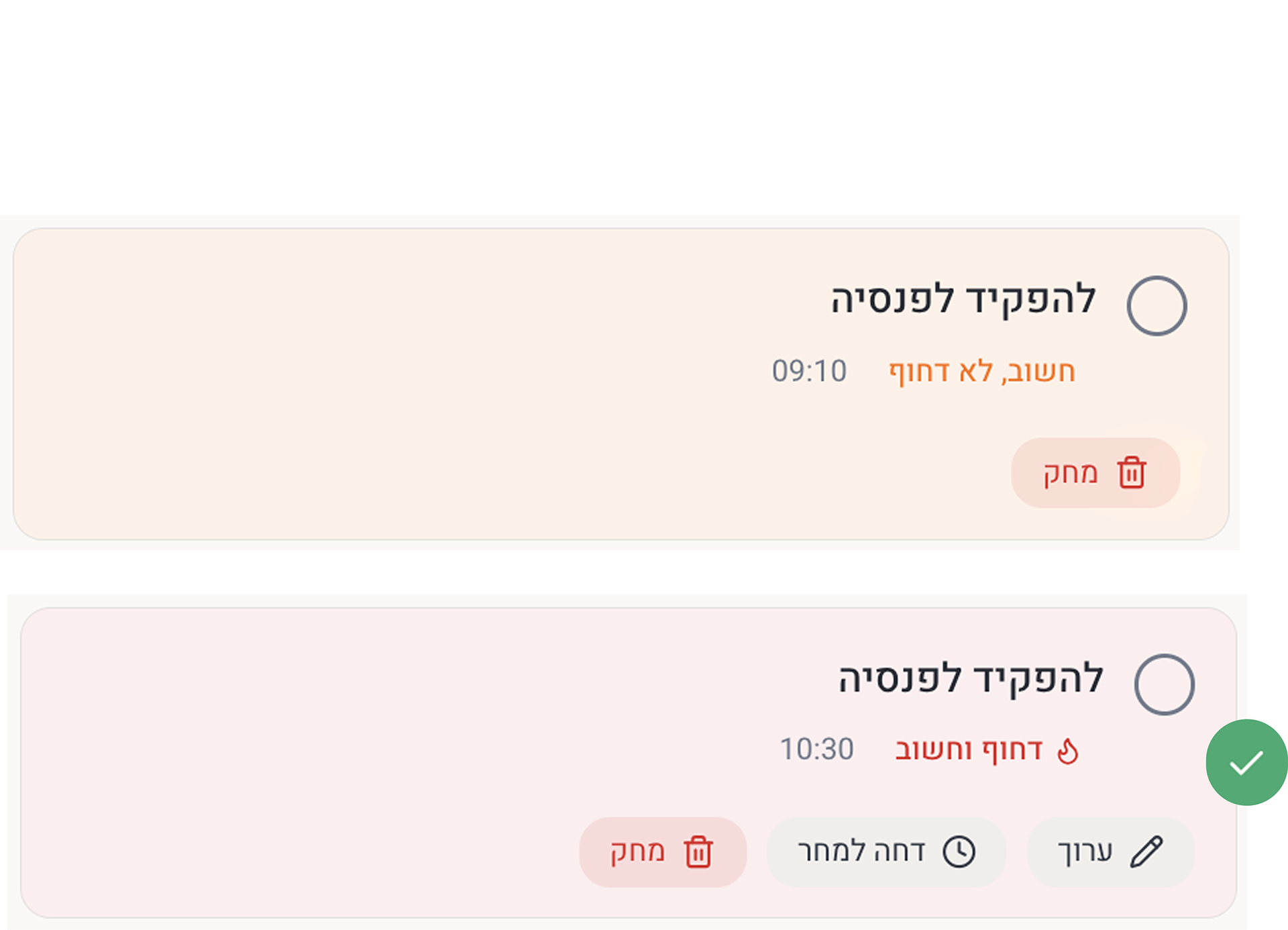 חסימת דחייה: לאחר שתי דחיות של משימה דחופה, כפתור הדחייה יינעל