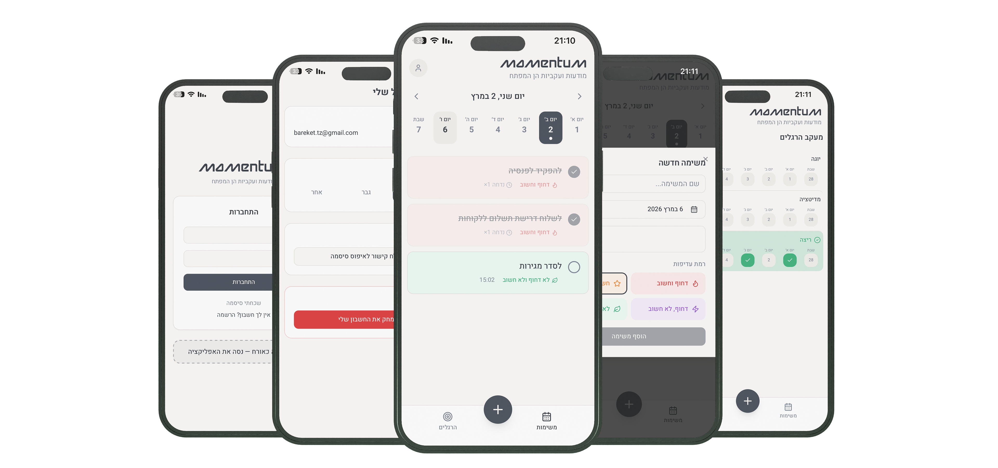 שימור לוגיקה: המערכת שומרת נתונים קריטיים כגון מונה הדחיות של משימות ורצף הצלחות ההרגלים, כך שהם נשמרים באופן עקבי לאורך זמן