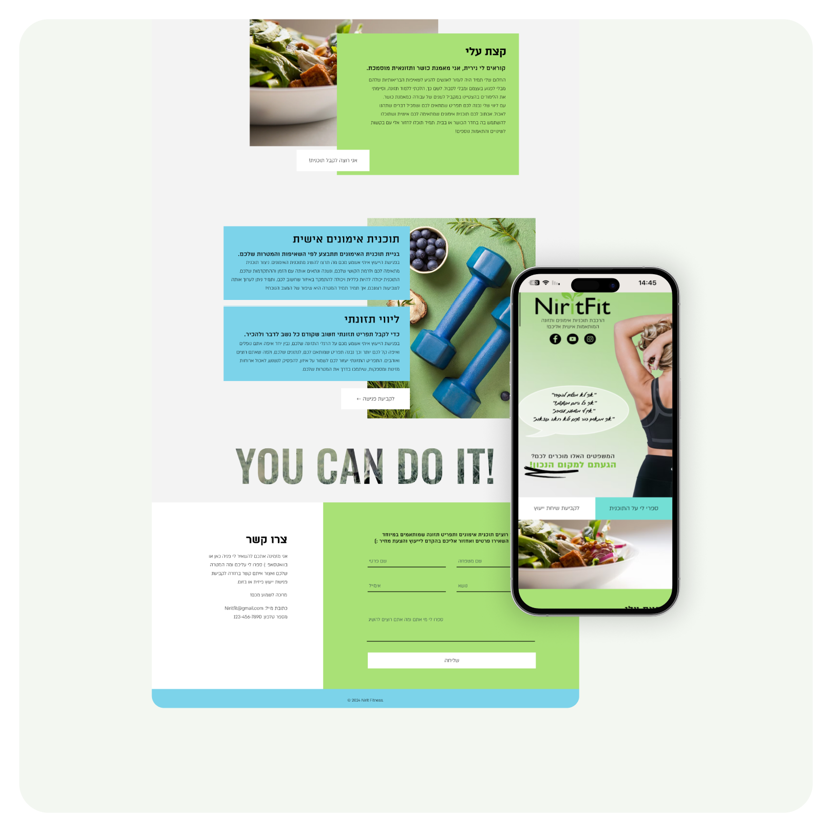 עיצוב דף נחיתה עבור תזונאית קלינית, המתמחה בליווי תזונתי מותאם אישית. הדף עוצב בקו נקי, רגוע ומזמין, עם דגש על בהירות מידע ונגישות. השפה הגרפית מעבירה תחושת איזון, מקצועיות ואמון, ומשקפת את הגישה האישית והרגישה שמובילה את התזונאית בעבודתה